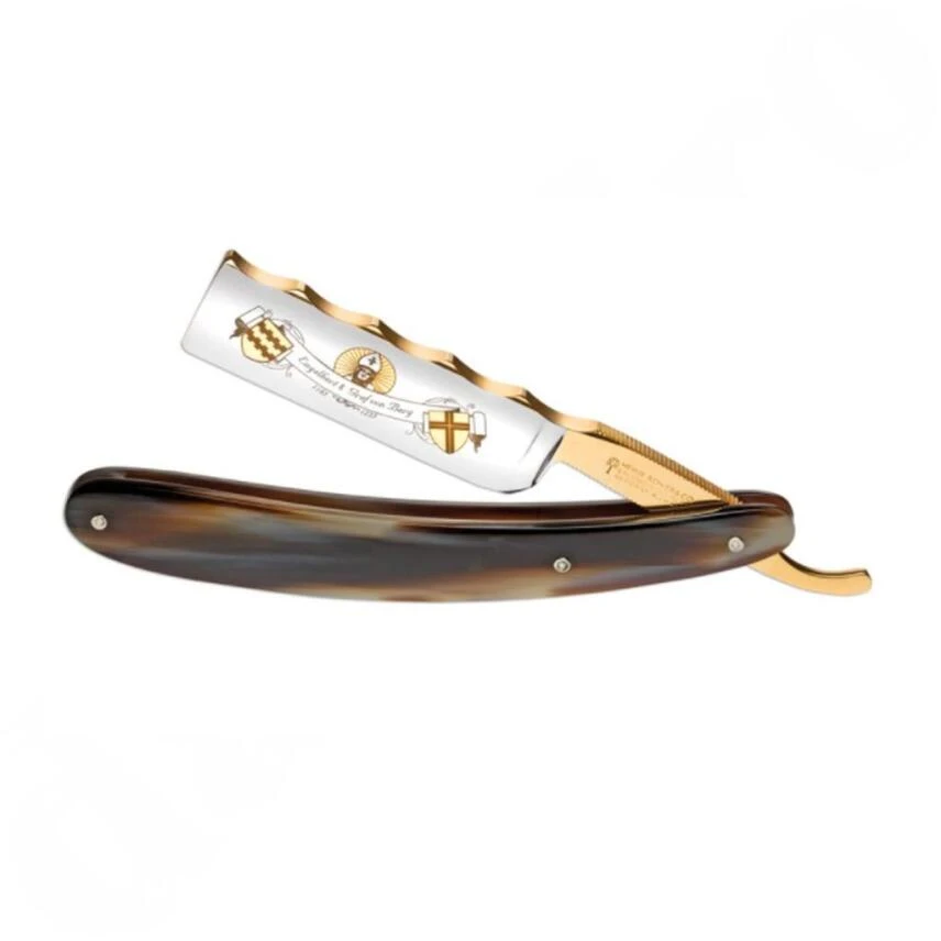 Freihandrasierer mit 7/8 Klinge mit französischer Spitze. Der Griff dieses spektakulären Rasierers besteht aus Abalone, einem Krebstier, das nur in neuseeländischen Gewässern vorkommt.