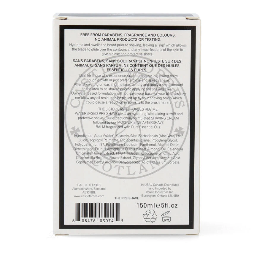 Erleichtert die Rasur! Castle Forbes Pre-Shave ist eine ölfreie Emulsion ohne Duft, die besonders nützlich und wirksam ist, um die Haut vor Schnittwunden zu schützen und das sanfte Gleiten der Klinge zu erleichtern. Es erweicht die Barthaare für eine bequemere und präzisere Rasur.