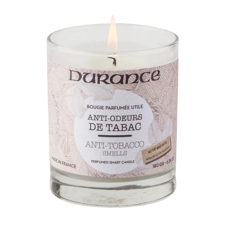 Diese Kerze verbindet das Nützliche mit dem Angenehmen! Die Duftkerze „Anti Tabakgerüche“ von Durance neutralisiert Tabakgerüche und parfümiert jedes Zuhause angenehm mit holzigen und würzigen Noten.