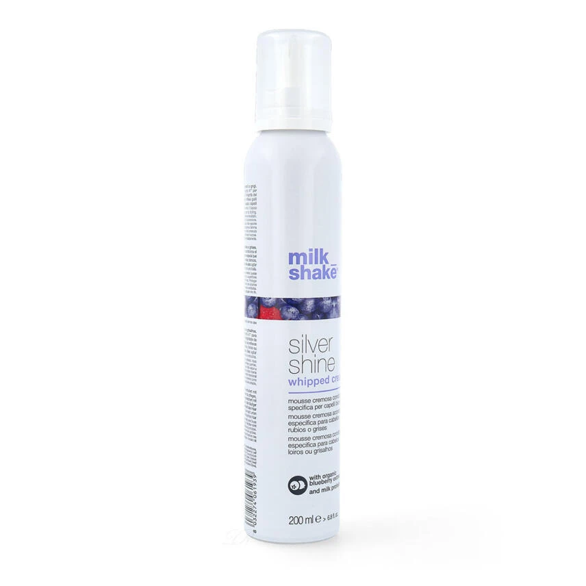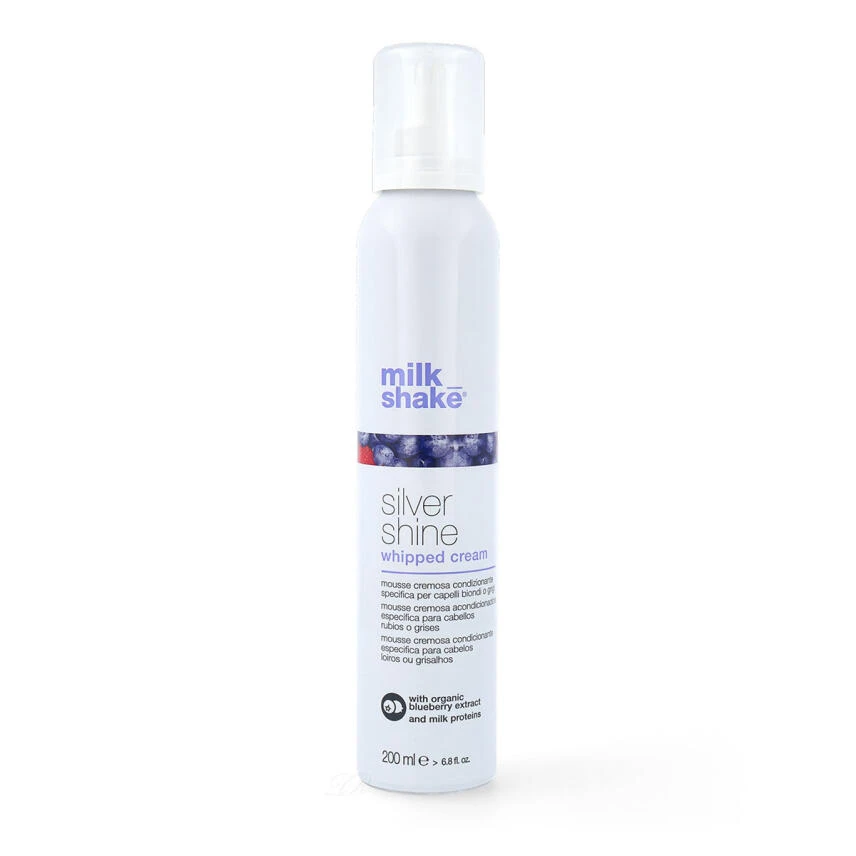 Die Anwendung der milk_shake „Silver Shine Whipped Cream“ ist sozusagen das Sahnehäubchen auf die vorausgegangene Pflege mit Shampoo und Conditioner aus der Reihe. Die ausgeklügelte Formel des cremigen Mousse-Schaums mit intensiven Wirkstoffen aus der Natur ist angereichert mit speziellen Pigmenten, die unerwünschte Gelb- oder Goldtöne eliminieren und blondem, weißem oder grauem Haar ein strahlendes Aussehen verleihen. Das Haar ist gepflegt und tief hydriert.