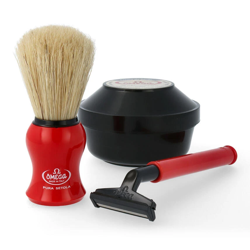 Omega Rasierset Rasierpinsel + Rasierer + Rasierseife