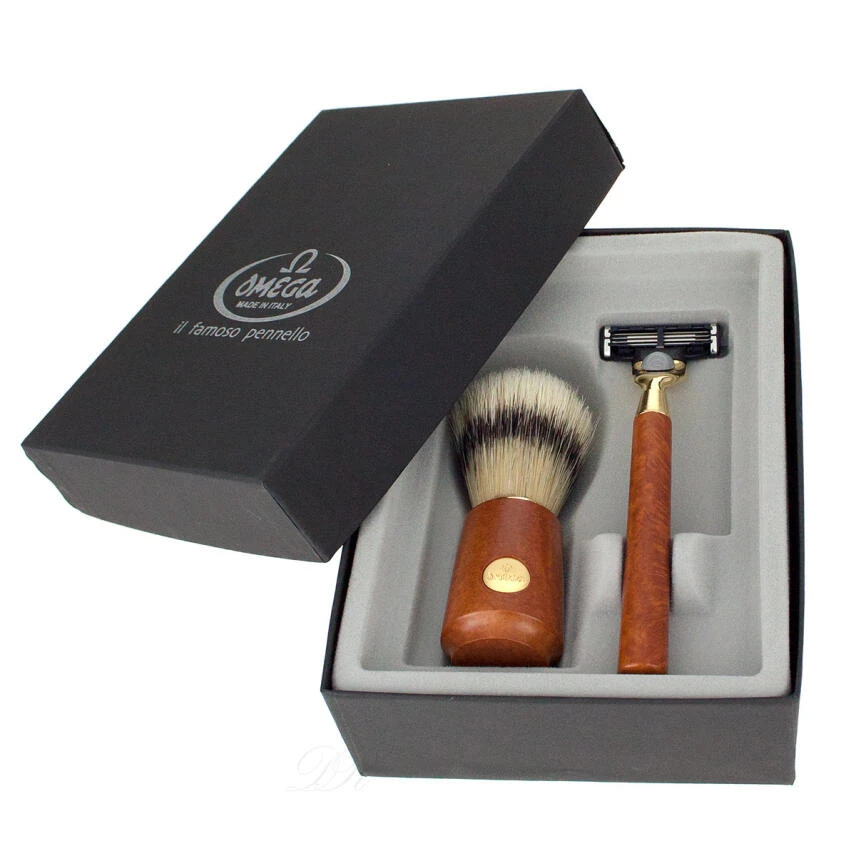 Omega Rasierset Wurzelholz M1144.2 Rasierpinsel Borste + Hobel