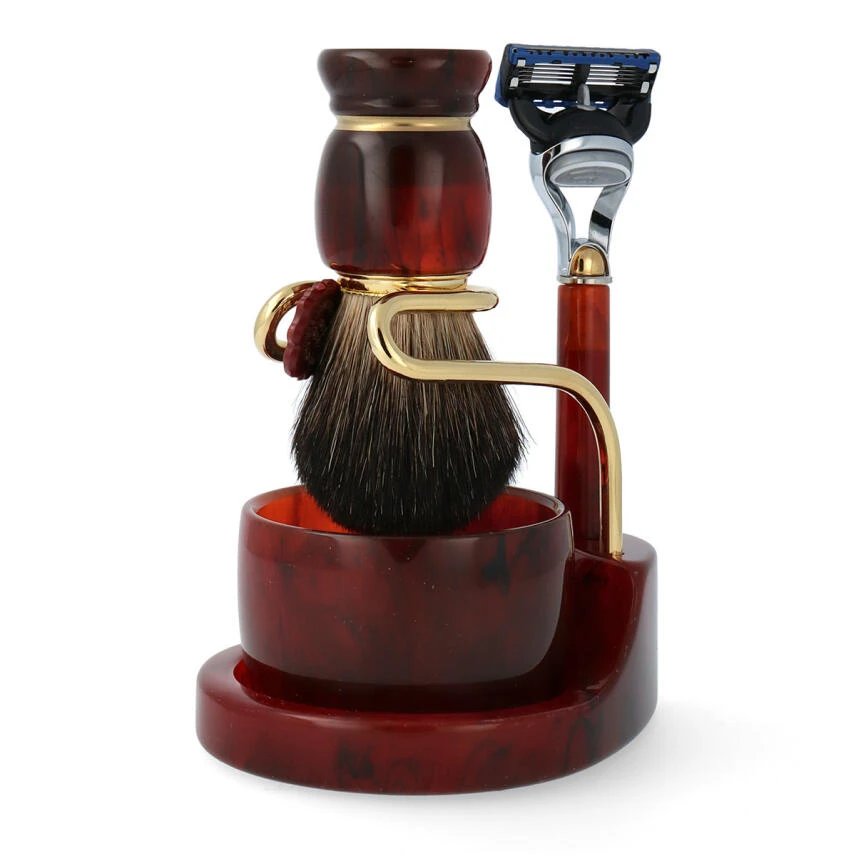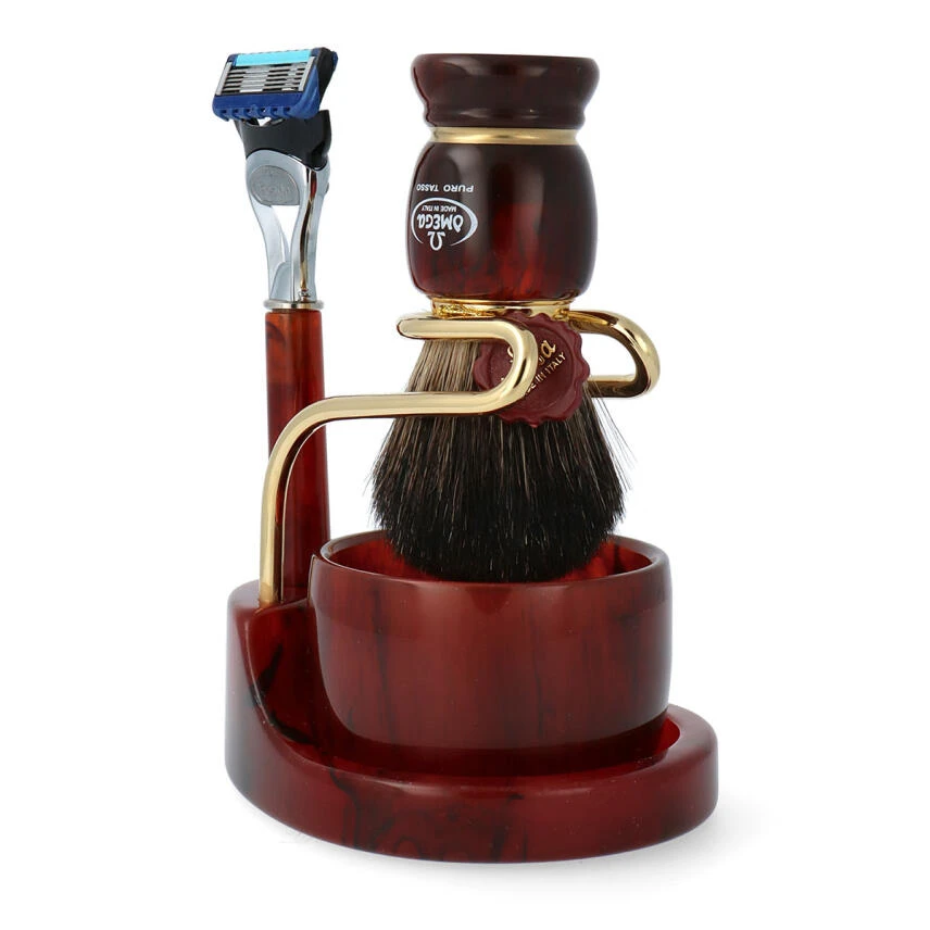Omega Rasur-Set 6151.11 Rasierpinsel Dachs + Tiegel + 5 Klingen Rasierer