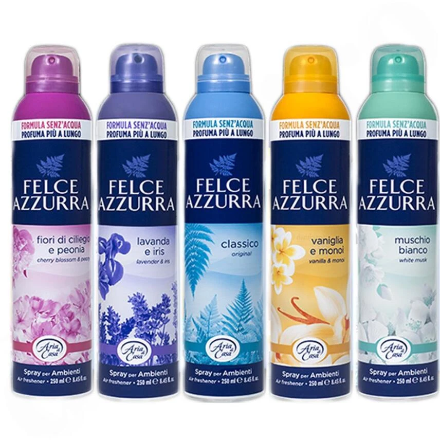 Eine raffiniert und elegant verpackte Spraydose mit dem unverwechselbaren klassischen Düften von Felce Azzurra.